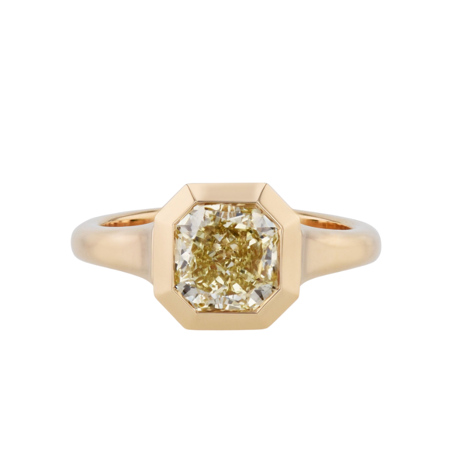 An extraordinary gold ring featuring a radiant yellow diamond centerpiece, crafted for rare elegance and bold luxury.